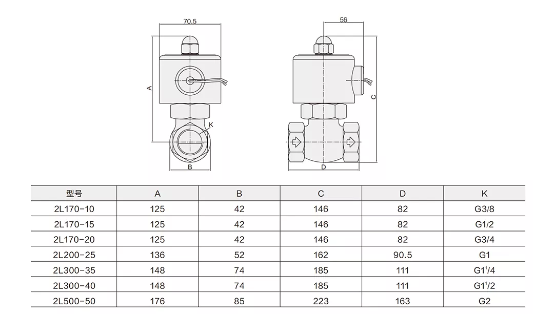 Características da válvula solenóide de vapor 2L de 2 vias: