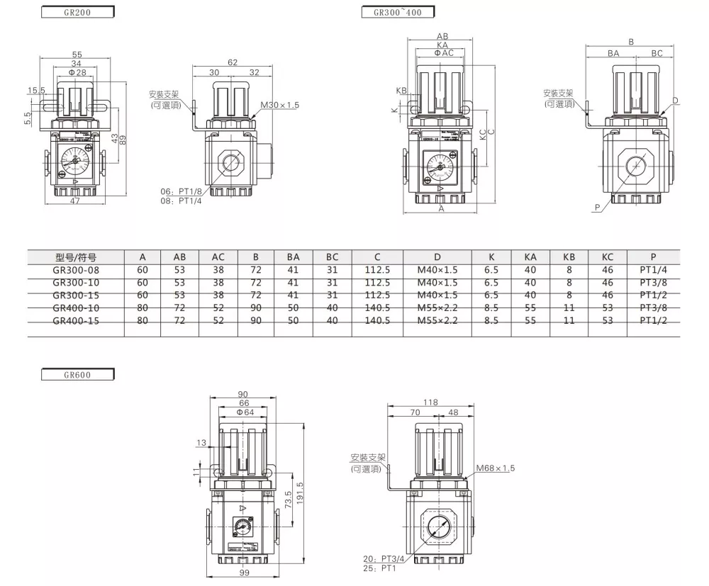 Regulador de pressão tipo GR Airtac Características do produto: