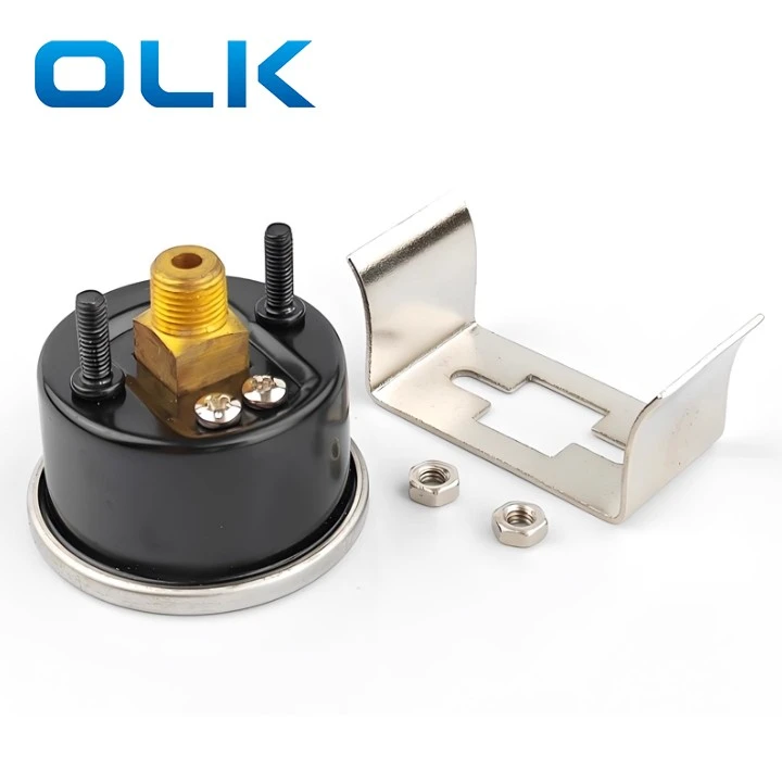 O medidor de pressão do tipo GU do tipo Airtac possui uma conexão rosqueada de latão, moldura de aço inoxidável, caixa preta, suporte correspondente e duas nozes.