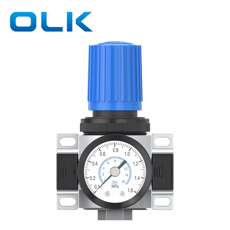 O regulador de pressão LR possui uma estrutura relativamente simples e é comumente usada em aplicações sensíveis a custos e funcionalmente simples. Uso do regulador do ar: puxe para desbloquear, girar para ajustar a pressão, pressione para baixo para travar
