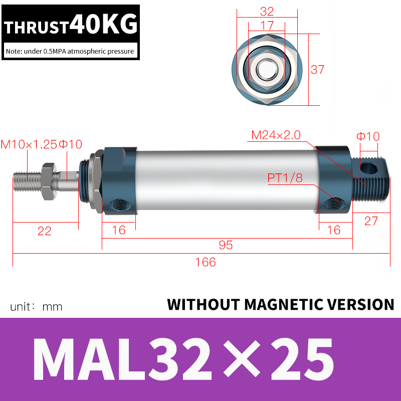 Cilindro de ar pneumático de 32mm com diâmetro de 25mm, ação dupla com conector y e 2 peças de encaixe para pc de 6mm mal32x25
