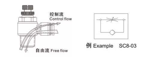 Uma válvula de controle de fluxo unidirecional é uma válvula de controle de fluxo composta por uma válvula de retenção e uma válvula borboleta em paralelo. É comumente usado para controlar a velocidade de um cilindro e também é conhecido como controlador de velocidade.