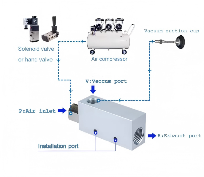 O gerador de vácuo é um novo tipo de componente de vácuo eficiente, limpo, econômico e pequeno que usa uma fonte de ar de pressão positiva para gerar pressão negativa. Isto torna muito fácil e conveniente obter pressão negativa em locais com ar comprimido ou em locais onde são necessárias pressões positivas e negativas em um sistema pneumático.