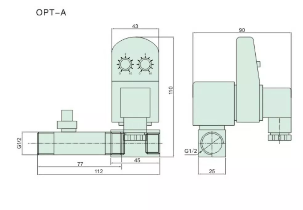 A estrutura dividida de drenagem automática do temporizador eletrônico OLK OPT-A é adequada para espaços de instalação estreitos e oferece direção de montagem flexível. A seção rosqueada elevada no meio é a porta de conexão ao corpo da válvula.