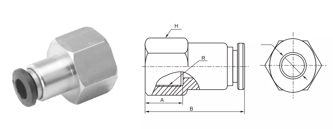 Push reto em fêmea PCF Push no encaixe do tubo e PC Push de rosca reta no encaixe do tubo pertencem ao tipo básico Push-in-ajuste. Mas o PCF é o fio R feminino reto. A rosca interna é usada para conectar componentes de rosca externos, e a extremidade do Tubo de Inserção é conectada a uma mangueira. instalado de forma mais compacta