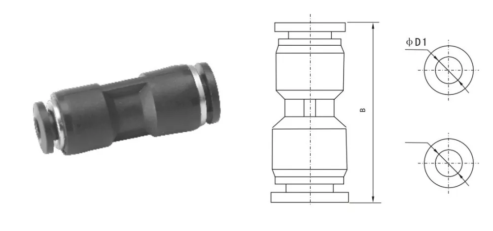 PG Redutor Union Straight Push no encaixe de tubo Parâmetros de dimensão de contorno