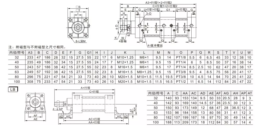 ·Várias especificações de cilindros e acessórios de montagem estão disponíveis para escolha dos clientes.