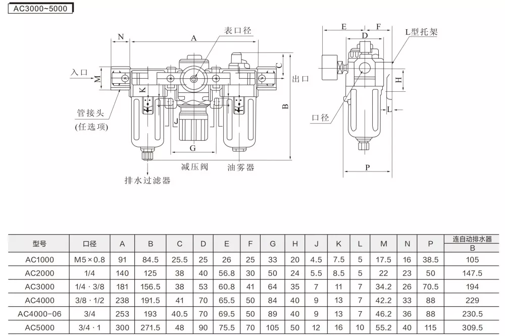 AC2000-5000:0,05-0,085 Mpa(0,51-8,7 kgf/cm³)