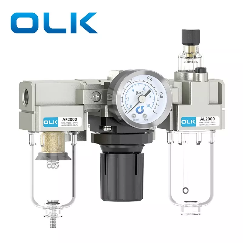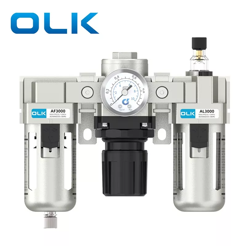 A Unidade SMC Tipo AC FRL (Filtro-Regulador-Lubrificador) é um componente pneumático fundamental que integra filtragem de fonte de ar, redução e regulação de pressão e tratamento de lubrificação. Ele fornece ar comprimido limpo, estável e lubrificado para sistemas pneumáticos, prolongando assim a vida útil dos componentes pneumáticos e melhorando a estabilidade do sistema. A unidade FRL da série OLK AC atua como o "guardião" essencial dos sistemas pneumáticos modernos.
